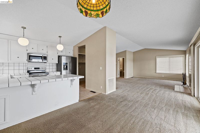 - Dishwasher, Microwave, Free-Standing Range, Refrigerator, Tile Counters, Range/Oven Free Standing