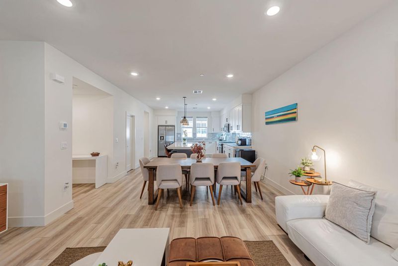 Modern Move-in ready 2023 Bayshore townhome offering 4 bedrooms and 3.5 bathrooms. The open main floor connects a bright living/dining area to a well-appointed kitchen with upgraded tile/backsplash, ample storage, and generous prep space. Sleek Cabinetry and a large island, perfect for entertaining. The primary suite features a custom California Closets walk-in (Apr 2025; ~$10k). About $10k more in finish upgrades include premium carpet, updated flooring in key areas, and enhanced kitchen tile for a fresh, move-in-ready feel. Flexible secondary bedrooms suit guests or a home office. Attached 2-car garage with interior access. Community amenities include a pool and clubhouse. Prime commuter location near Hwy 84/Dumbarton and I-880, close to parks, waterfront paths/trails, shopping, and major employers.
