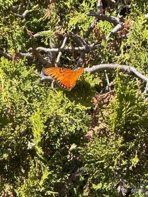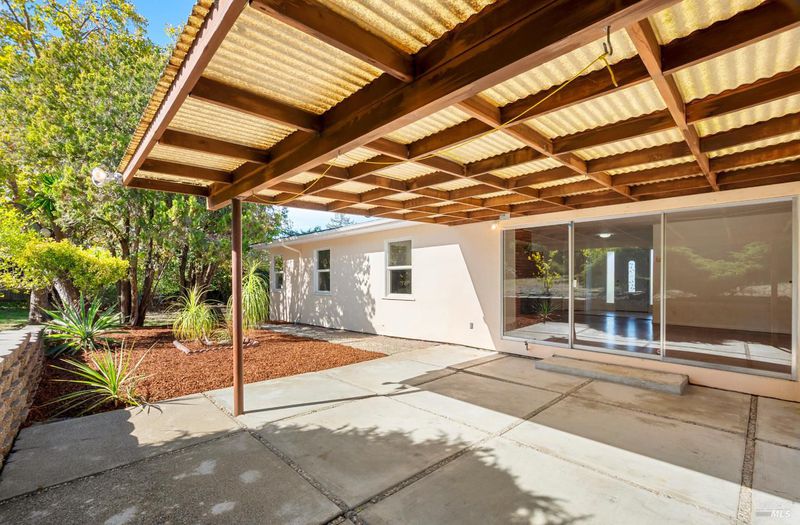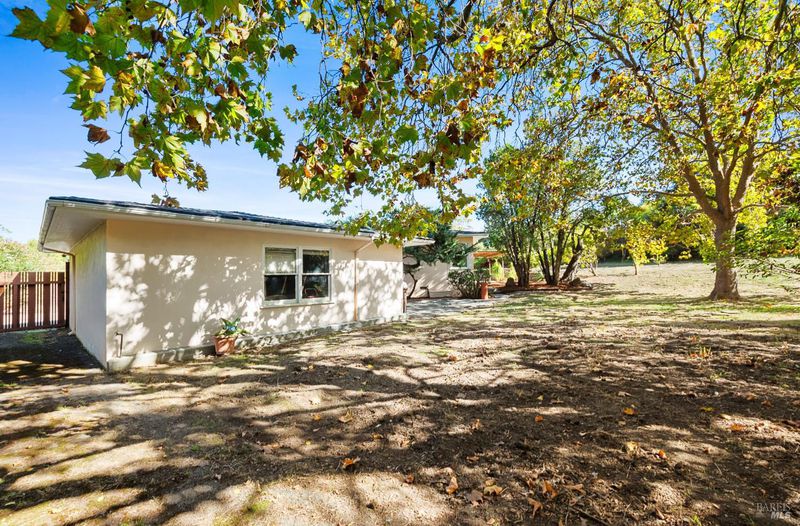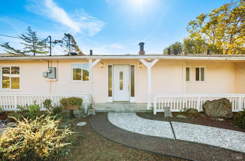 Very Special Property! Mid-Century home on 31,799 lot with room to expand! One level home w/ new & newly sanded Oak floors. Freshly painted interior! Generous living room greets you & features sliding door to patio, period wood burning fireplace w/ brick surround & a large, BRAND NEW Bosch mini-split for heat & AC! Living room large enough for dining area. Kitchen has new cooktop gas stove, new microwave & serene hilltop views from window. Adjacent room is large enough to hold your biggest dining table or serve as a multi-purpose room (4th bdrm, playroom, office or family room). This room also has a sliding door to the backyard. There are three beautiful bedrooms with new Oak floors & double paned windows with views to the expansive yard. Cedar in closets! Lot is .73 Acres per tax records. Primary bedroom hosts an ensuite bathroom with window, new toilet & shower. Hall bathroom has a window & shower over tub. Double paned windows on most windows throughout! Separate two-car garage with ample storage & private entrance to yard. New sewer line! Extra-wide driveway has parking for several large vehicles! The enormous yard has fruit trees, shade trees, flowers & enough space to build. Private location on a curve of a culdesac. This move-in-ready home is perfect for the holidays!