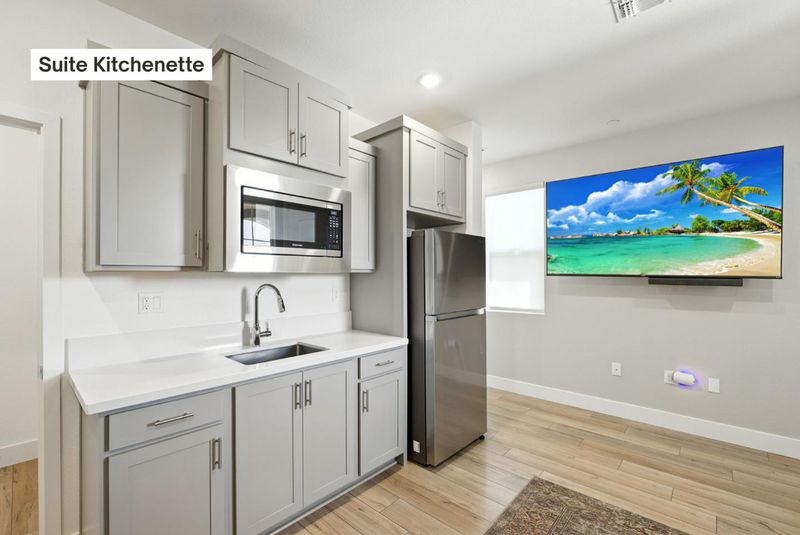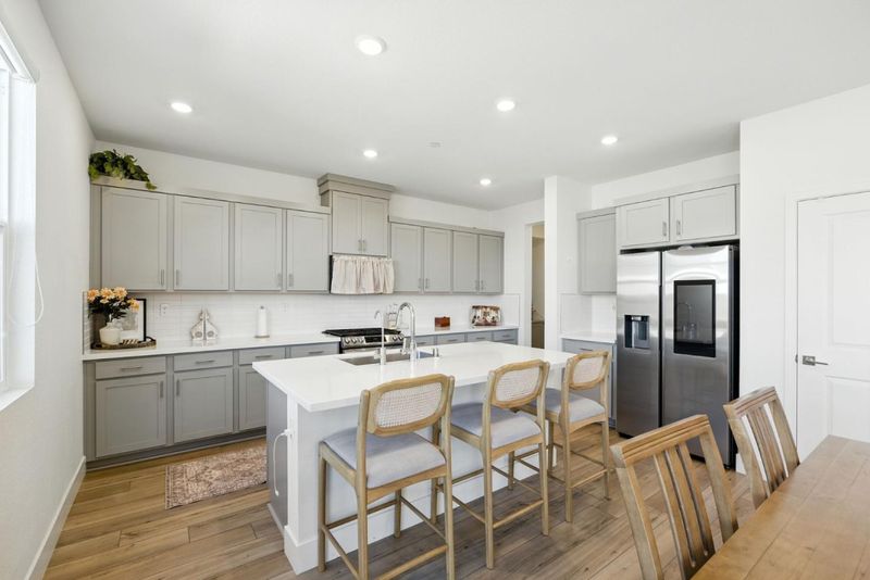 - Countertop - Quartz, Dishwasher, Hookups - Ice Maker, Microwave, Oven Range - Built-In, Gas
