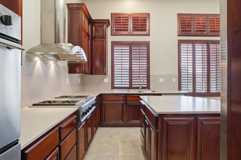 Cooktop - Gas, Countertop - Synthetic, Dishwasher, Hood Over Range, Microwave, Oven - Built-In, Pantry, Refrigerator