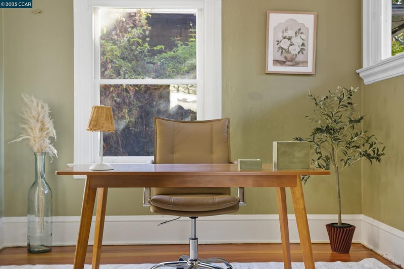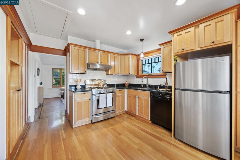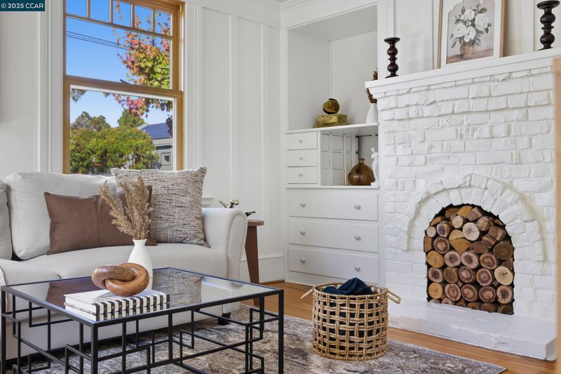Welcome to 901 San Antonio in Alameda’s coveted Gold Coast! This 1905 Craftsman cottage packs character into every inch. 2 bedrooms and 1 jack-and-jill bathroom on a sunny corner lot. Fresh interior paint sets off Craftsman details throughout: warm hardwood floors, beadboard in the bedroom, classic picture-rail molding, and a living room anchored by an original brick fireplace beside a period built-in cabinet. The updated kitchen honors the home’s period style with abundant wood cabinetry and a gas range hookup for your inner chef. Practical spaces abound—an unfinished basement with laundry and storage plus a floored attic offering exceptional additional storage. Set in Alameda’s laid-back, walkable island community, you’ll love the tree-lined streets, plentiful shops and highly rated schools. This is a rare opportunity in the Gold Coast: vintage charm, thoughtful updates over time and move-in readiness make this jewel box the perfect Alameda gem. Come see it before it's gone!