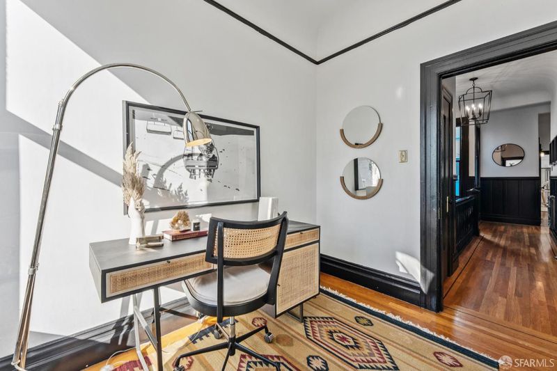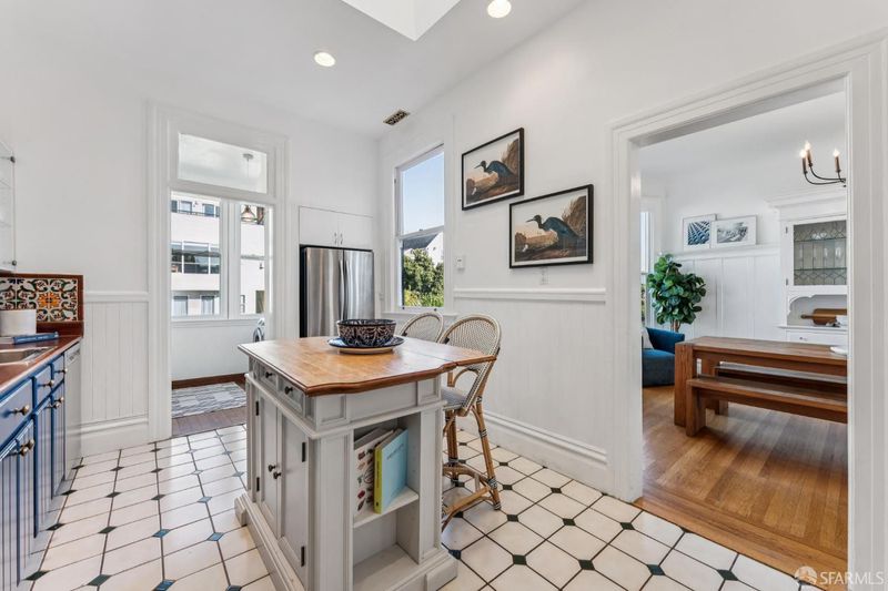 A sophisticated top-floor Edwardian residence where timeless architecture meets refined modern living. Soaring ceilings, rich hardwood floors, and beautifully preserved period moldings and wainscotting create an atmosphere of classic San Francisco elegance, while curated updates bring comfort and ease to daily life. The gracious living room, anchored by a decorative fireplace, offers an inviting setting for intimate gatherings, while the spacious dining room, with original built-in cabinetry, allows for well-attended dinner parties. A generously sized office provides exceptional flexibility for working or relaxing at home. The thoughtfully updated eat-in kitchen is flooded in natural light by an expansive skylight. An extraordinary sun-filled garden stretches across the full width of the extra-wide property, offering a rare and peaceful outdoor sanctuary in the heart of the city. Additional features include in-unit laundry, garage parking, and a voluminous deeded storage room, ideal for a studio, workshop, or additional workspace. Ideally positioned in the highly desirable Mission-Potrero corridor, this distinctive home captures the very best of San Francisco living: architectural character, modern functionality, and an exceptional urban garden retreat. This is city living at its very best!