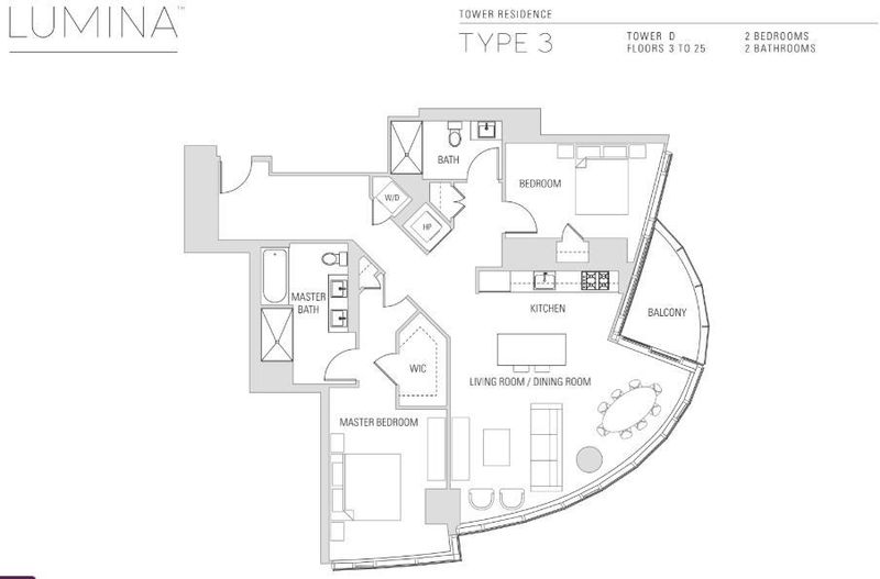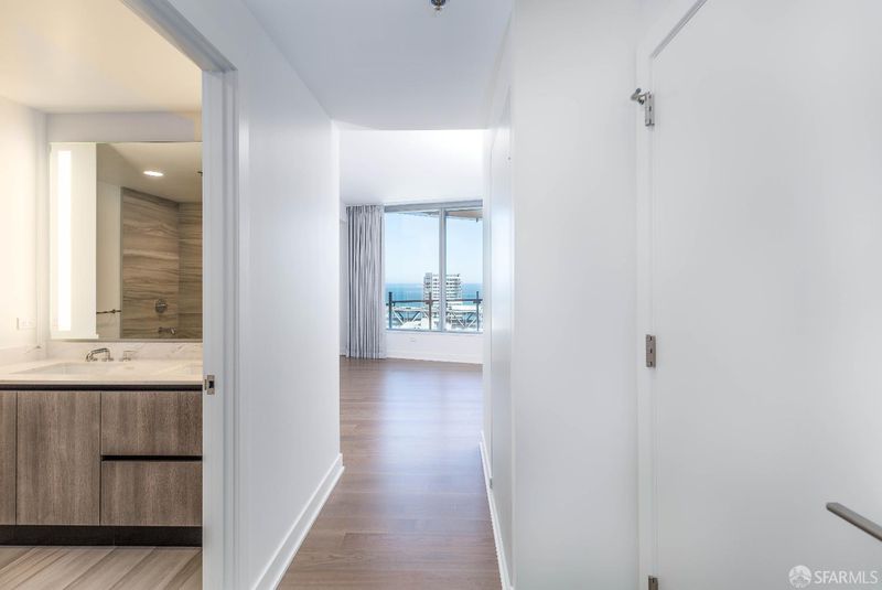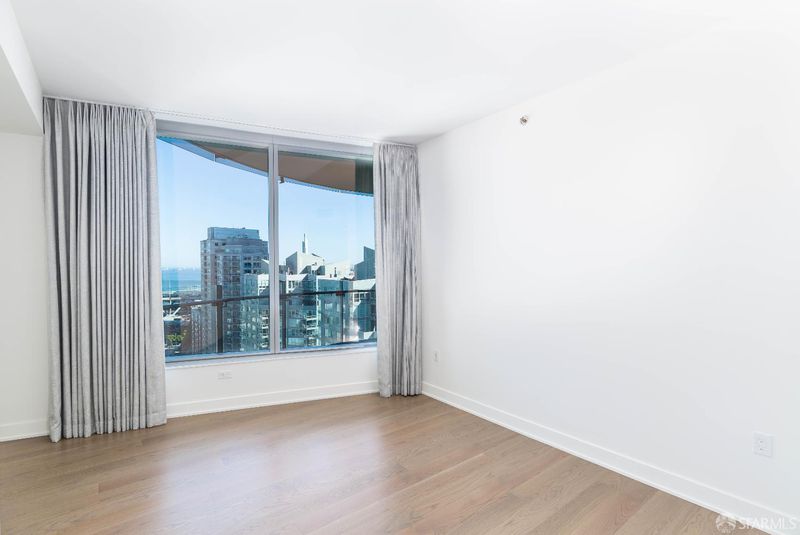Welcome to this high-floor corner 2-bedroom, 2-bathroom residence at the luxurious LUMINA. Step into an open-concept living space filled with abundant natural light, featuring floor-to-ceiling windows showcasing breathtaking Bay and city skyline views. The modern kitchen boasts high-end Gaggenau appliances, quartz countertops, and custom cabinetry. Retreat to the cozy primary suite with an ensuite bathroom featuring dual vanities, a soaking tub, and a glass-enclosed shower. The second bedroom offers ample closet space and a stylish second bathroom. Additional highlights include hardwood flooring, in-unit laundry, and a spacious balcony off the living room. One-car parking is included. Designed by Bernardo Fort-Brescia of Arquitectonica, LUMINA offers residents world-class amenities such as a full-length saline lap pool, a 7,000 sq. ft. state-of-the-art gym, landscaped outdoor spaces, a rooftop, valet parking, 24-hour door service, and front desk service. On the ground floor of LUMINA, Woodlands Market offers organic and natural products from local suppliers, prepared foods, and a coffee bar. Walking distance to the Embarcadero waterfront, Ferry Building, the Financial District, Marina, Oracle Ballpark, and some of the best fine dining in the city.