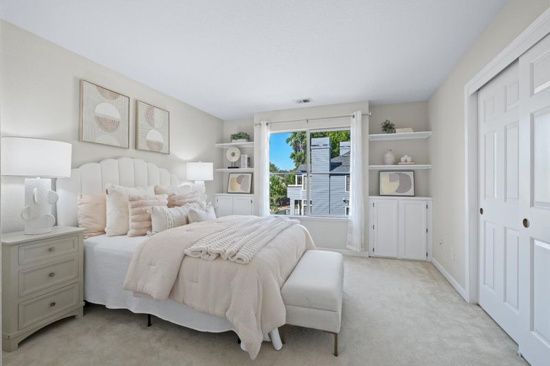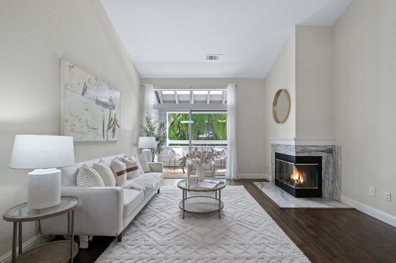 *Soaring ceilings and an extended patio with serene green views set the tone for this bright and airy condo. *Inside, the open kitchen flows seamlessly into the dining and living areas, offering ample cabinetry, stainless steel appliances, and a semi-island perfect for cooking and entertaining. *The spacious living room, warmed by a cozy fireplace, is designed for both comfort and gatherings. *The home features two bedrooms and two full baths, including a private ensuite and a secondary bedroom enhanced with custom shelves and cabinets. Added conveniences include in-unit laundry, central AC, and an attached garage with additional permit parking. *With no upstairs neighbor, privacy comes naturally. The beautifully maintained community offers a sparkling pool and clubhouse. Highly rated Morrill Middle School (8/10), and Independence High School (8/10) *Test scores rated by GreatSchools. *Perfectly located, youll be within walking distance of Townsend Park, San Jose Golf Course, playgrounds, tennis courts, and shopping at 99 Ranch Market, Costco, H Mart, and Safeway. Plus, enjoy easy access to leading tech employers including Nvidia, Google, Apple, and Supermicro.