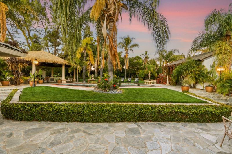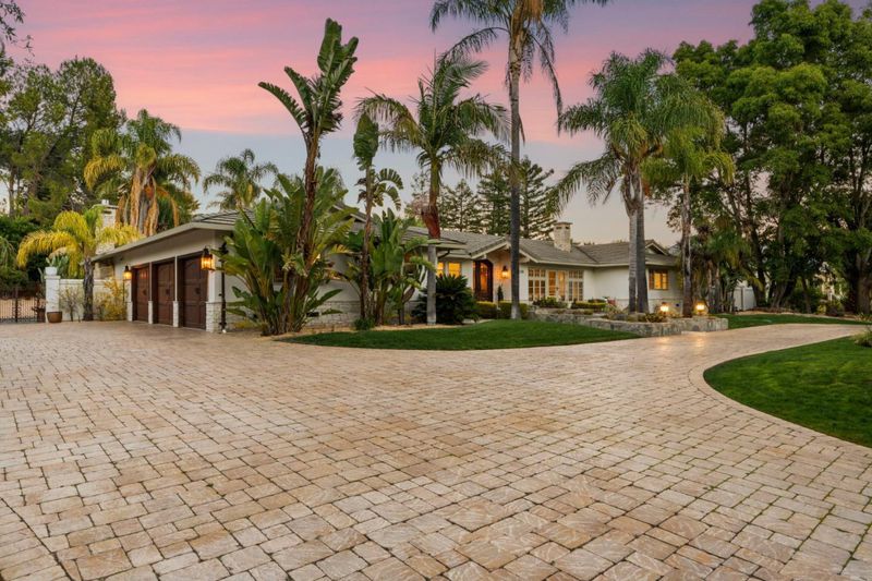 Set on a flat acre of gorgeously manicured grounds. This single story home borrows transitional architectural tones from the French countryside. The circular driveway leads up to a large 3 car garage. Five bedrooms that come with a separate guest house, sports court, large pool with covered grotto like spa, adjacent bath with changing room. Outdoor kitchen covered by a palapa, the perfect shade from natural elements while dining al fresco. Backyard is south facing and hosts the perfect weather all year long. The yard is an entertainers paradise. French oak engineered flooring throughout. Kitchen has an open layout with Thermador appliances and tuscan inspired limestone touches. Front living room has custom built shelving and cozy gas fireplace. Knotted Alderwood window and doors. Indoor surround sound. Generous master suite with walk in closet and wardrobes. Heated floors in bath and an oversized shower with tropical garden views. Enjoy the privacy this secluded subdivision provides. Hidden away, yet suburban enough hooked up to city sewer and close proximity to Sand Hill Road, Silicon Valley and San Francisco. Close to Menlo School, Sacred Heart Prep, Phillips Brooks, Woodside Priory amongst many other renown schools. Enjoy sunsets and the nature this lifestyle provides.