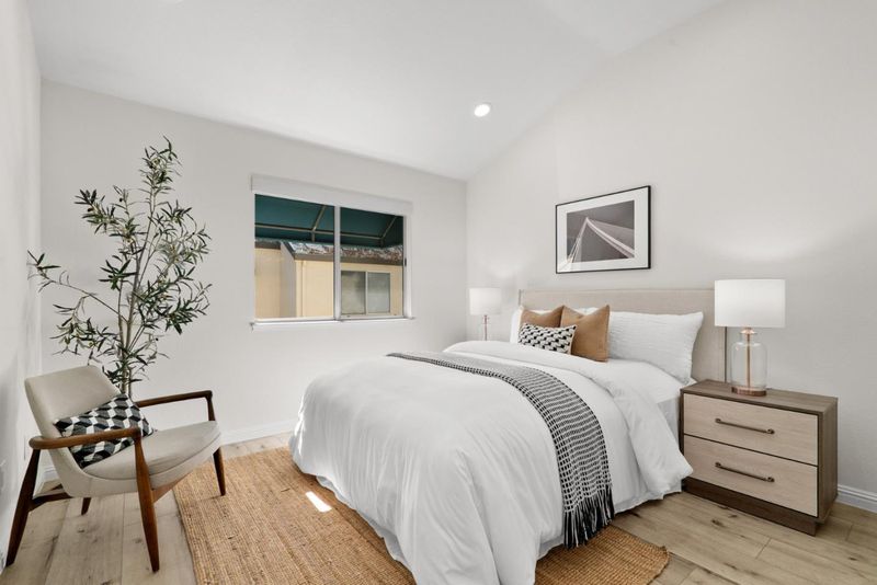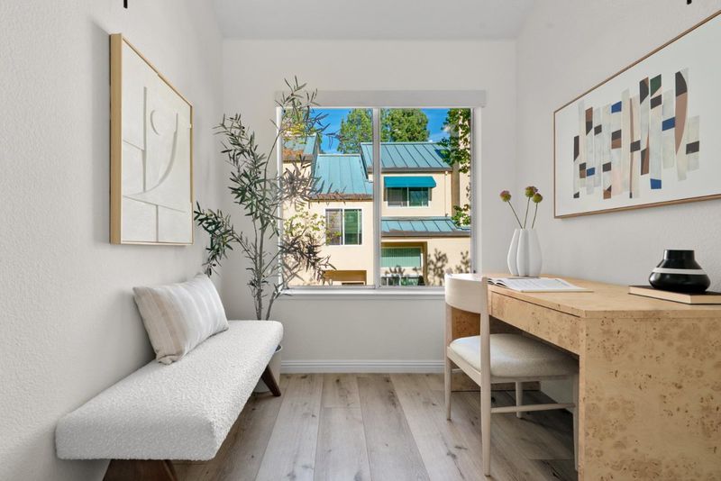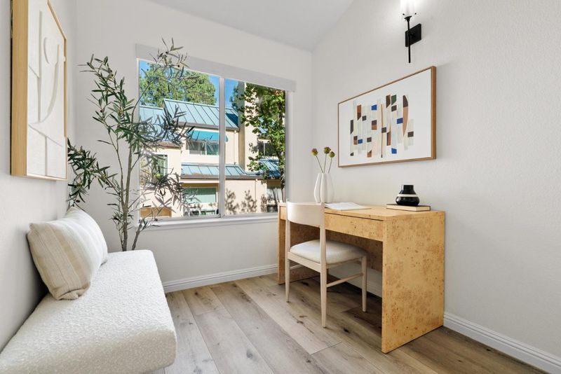 Redefining luxury at The Galleria in River Oaks. This thoughtfully designed home features soaring ceilings and floor-to-ceiling windows that fill the space with natural light. The inviting living area with a cozy fireplace opens to the front patio, ideal for relaxing or entertaining. The elegant dining area flows into the chefs kitchen with ceiling-height cabinetry, quartz island, full backsplash, wine fridge, and a skylight that brightens up the space with natural lights leading to the back patio. A same-level bedroom and fully upgraded bath offer style and functionality. The bonus loft is perfect for a study. Upstairs, the expansive primary suite impresses with vaulted ceilings, generous closets, and a spa-like bath with dual vanities and rainfall shower. Attached 2-car side-by-side garage with EV charger, in-unit laundry, central heating and AC (newly installed in 2023), reverse osmosis drinking water system and ample extra storage. The community features lush landscaping, a sparkling pool and plenty of guest parking. Prime location near River Oaks Plaza, Rivermark Village, Crescent Village, restaurants, coffee shops, parks, hiking trails, Nvidia, Cisco, Broadcom, BART, light rail and the Agnew School campus.