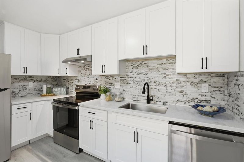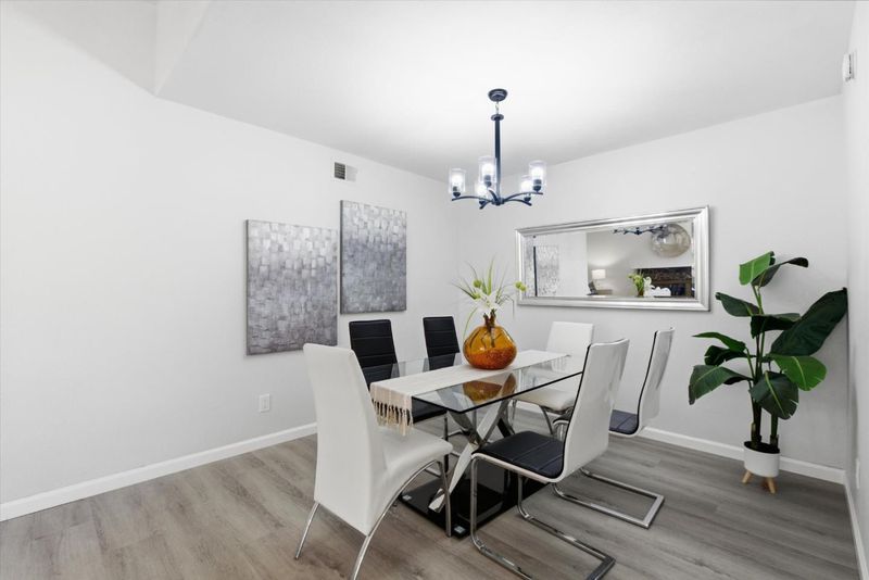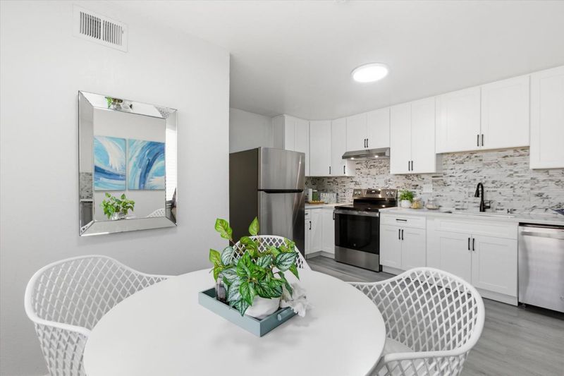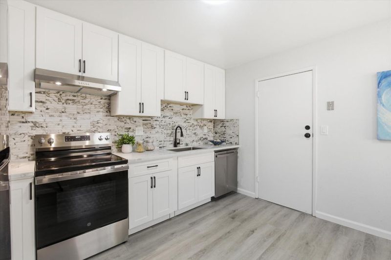 This move-in ready 3 bedrooms, 2 full bathrooms home was beautifully updated and modernized. It feature a functional layout with open living room and dining room areas that are perfect for family gathering or entertaining. The NEW Kitchen boasts of a modern design with white cabinets, granite countertop that is elegantly paired with understated black and white tiled backsplash, black cabinet fixtures and faucet, and NEW stainless steel appliances! This generous kitchen space accommodates an eat-in area. Two full bathrooms are upgraded with granite wall slabs, NEW vanities with granite tops, and NEW light fixtures. The primary bedroom opens into a private backyard with a patio that is perfect for relaxing or entertaining. This home is updated with NEW double-pane windows & sliding door, NEW waterproof vinyl floors throughout this home, and freshly painted interiors! It also has a NEW furnace and a NEW water heater!