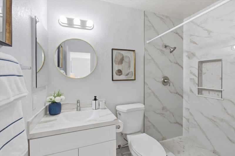- Granite, Shower over Tub - 1, Stall Shower, Updated Bath