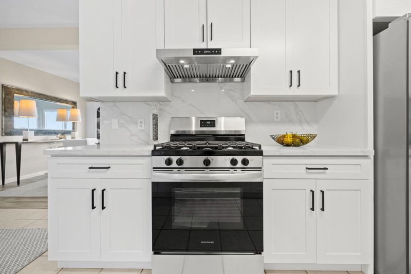 - Countertop - Stone, Dishwasher, Hood Over Range, Oven Range - Gas, Refrigerator