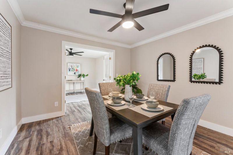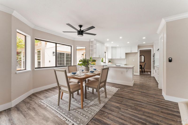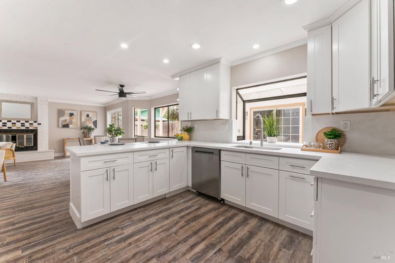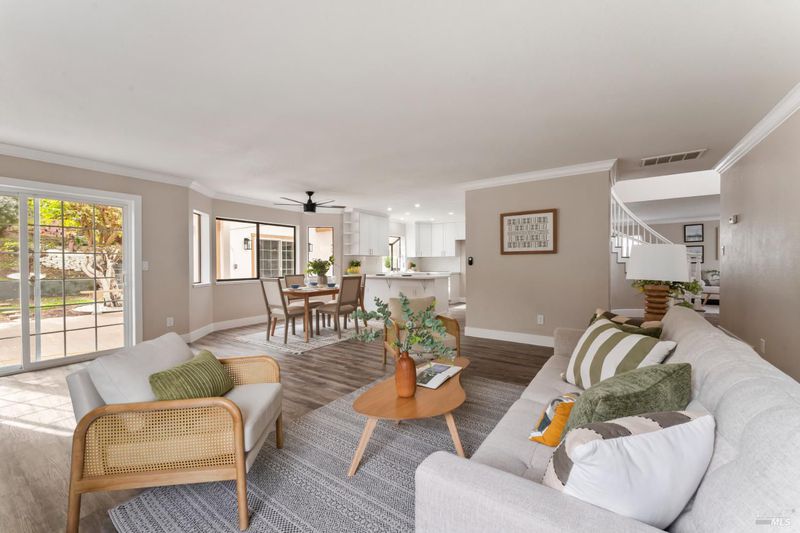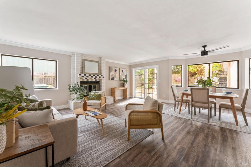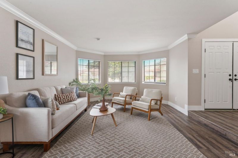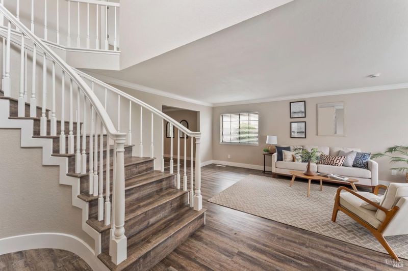 This expansive 5-bedroom residence is ideal for multi-generational households, offering not just one but two primary en suite bedrooms one conveniently located on the ground floor for in-laws or guests, and a second upstairs for enhanced privacy. This layout allows for comfort, separation of living needs, and long-term flexibility as family dynamics evolve. Meticulously refreshed, the home features brand-new flooring throughout, newly updated bathrooms and kitchen with modern finishes and appliances, and fresh paint that brings a bright and inviting feel to every room. The dramatic staircase and high ceilings create an elegant first impression, while the separate living and family rooms provide space for both large gatherings and quiet relaxation. Located in a vibrant area known for its diverse dining, shopping, theaters, and entertainment options, this property is also just a short drive from Napa's wine country and Six Flags Discovery Kingdom offering lifestyle convenience for all ages and generations under one roof.