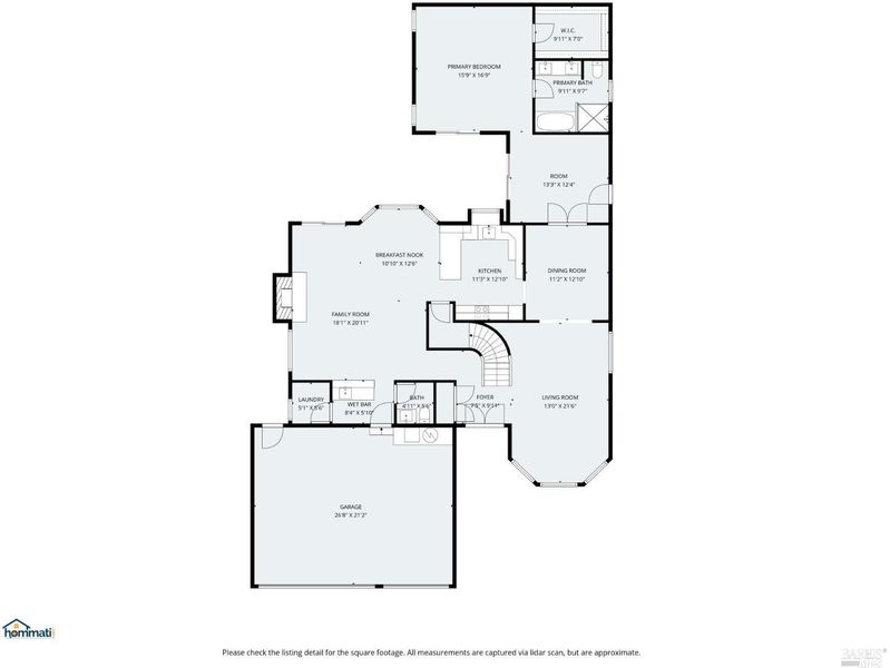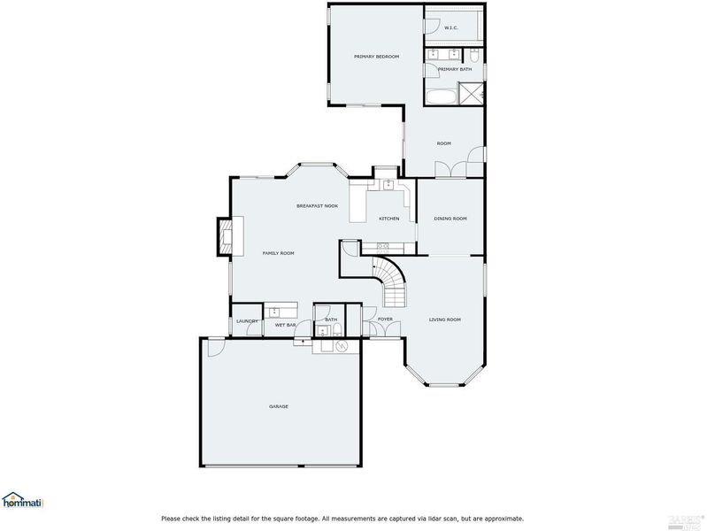 - Family Room, Garage, Living Room, Primary Bedroom, Street Entrance