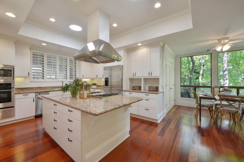 - 220 Volt Outlet, Cooktop - Gas, Countertop - Granite, Dishwasher, Exhaust Fan, Garbage Disposal, Hood Over Range, Island, Microwave, Oven - Double, Oven - Gas, Pantry, Refrigerator, Trash Compactor