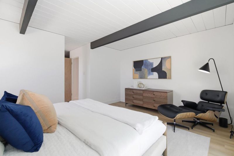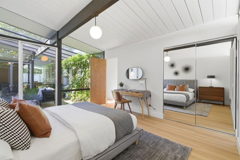 Original Joseph Eichler / Original Owner Debuttucked on a quiet street in coveted Serra Park, this mint-condition Eichler honors everything mid-century modern lovers crave: huge lot, clean lines, radiant flrs, walls of glass & signature open-air atrium blurring indoor/outdoor living. Claude Oakland designed home features post-&-beam architecture, tongue-&-groove ceilings w/exposed beams, iconic globe lighting & original brick fireplace. Fresh int/ext paint, new wide-plank flrs & updated baths blend preserved elements w/modern comfort. Light-filled living rm, sep dining & chef-inspired kitchen w/center island, pantry, generous storage & adj laundry for full-size W/D. Flexible bonus/office rooms, primary suite w/cedar-lined walk-in, yard access & spa-inspired bath w/new stone cntrs, updated vanity, backlit mirror, designer lights & frameless glass shower. Outdoor pool oasis w/electric auto cover, built-in spa, privacy fencing, mature fruit trees & curated landscaping perfect for entertaining. 2-car garage, expansive patios & multiple seating areas enhance seamless indoor/outdoor flow. Top-rated West Valley Elem & Homestead High, mins to DT Sunnyvale, Caltrain & ~4 mi to Apple Park. Rare opportunity to own a preserved, thoughtfully updated Eichler w/ timeless mid-century appeal.