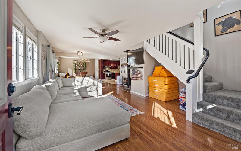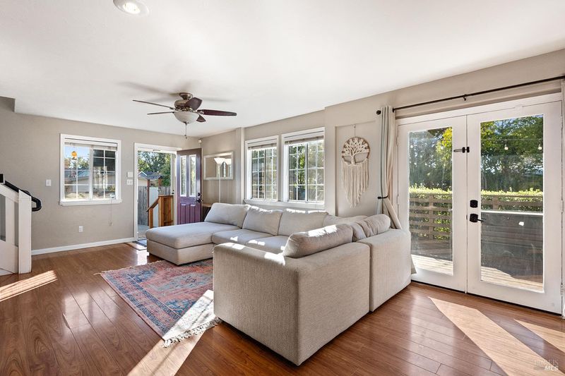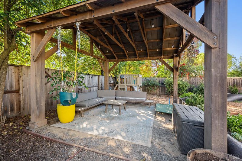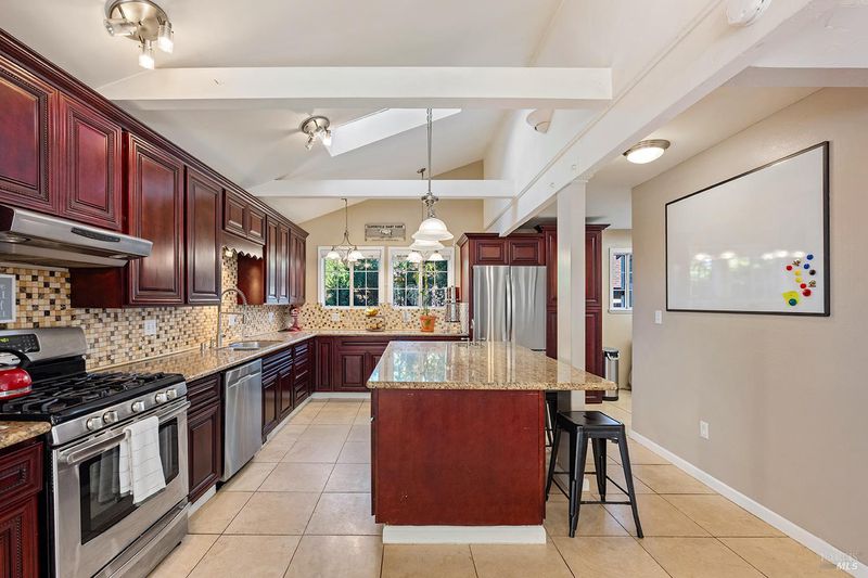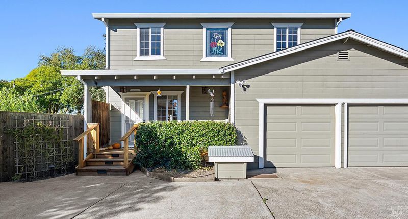 Built in 1998, this beautifully maintained 3-bedroom, 2.5-bath home sits on a 7,911-square-foot lot and offers approximately 1,800 square feet of living space. Nestled on a private flag lot, it provides a rare sense of privacy while remaining close to everything Santa Rosa has to offer. Step inside to an inviting open floor plan with the living & dining areas flowing seamlessly into the remodeled kitchen, featuring granite countertops, cherry cabinets, and a large island with a secondary sink perfect for cooking and entertaining. A large skylight provides natural light. Upstairs, the primary suite has two closets, new LVP flooring, a barn door, and a luxurious jetted tub in the formally updated bathroom. Recent upgrades include new carpet, a roof and gutters (2024), a furnace (2024), new water heater, a whole-house water filter system, and a five-year-old AC unit. Recently built front porch and steps, side fence, and a new entrance sign also add to the improvements. The private fenced backyard featuring a large gazebo and deck perfect for entertaining or a play area. The spacious two-car garage plus driveway provides ample parking for residents and guests. It is conveniently located near the SMART Train, Coddingtown shopping, and the Schulz Museum.