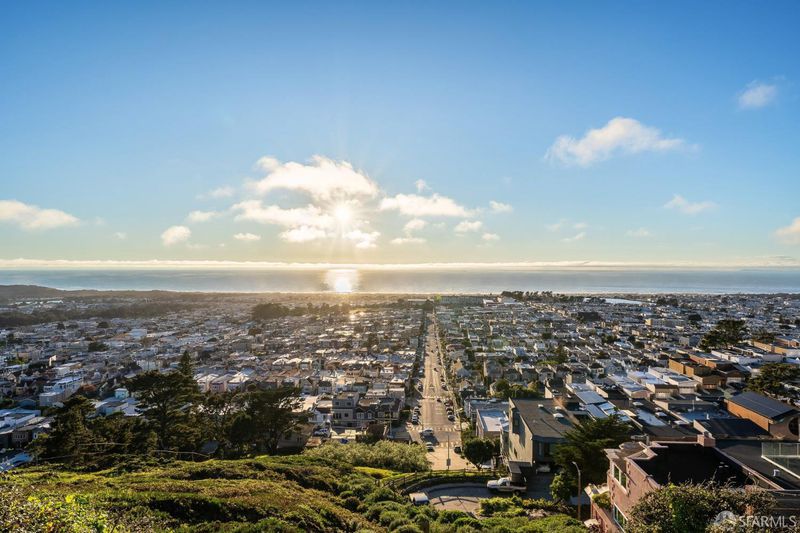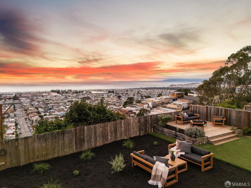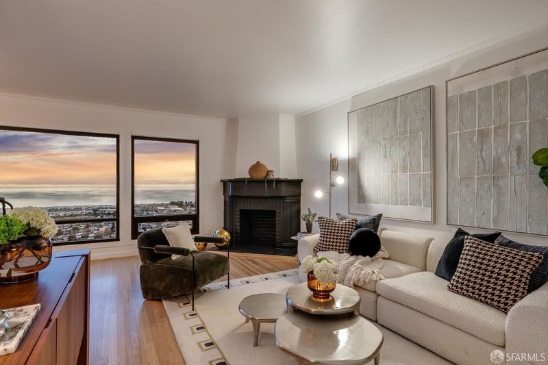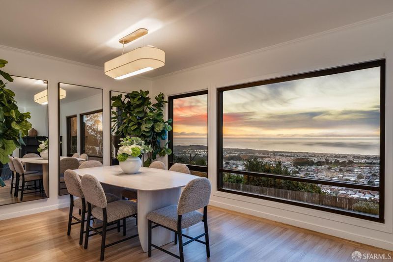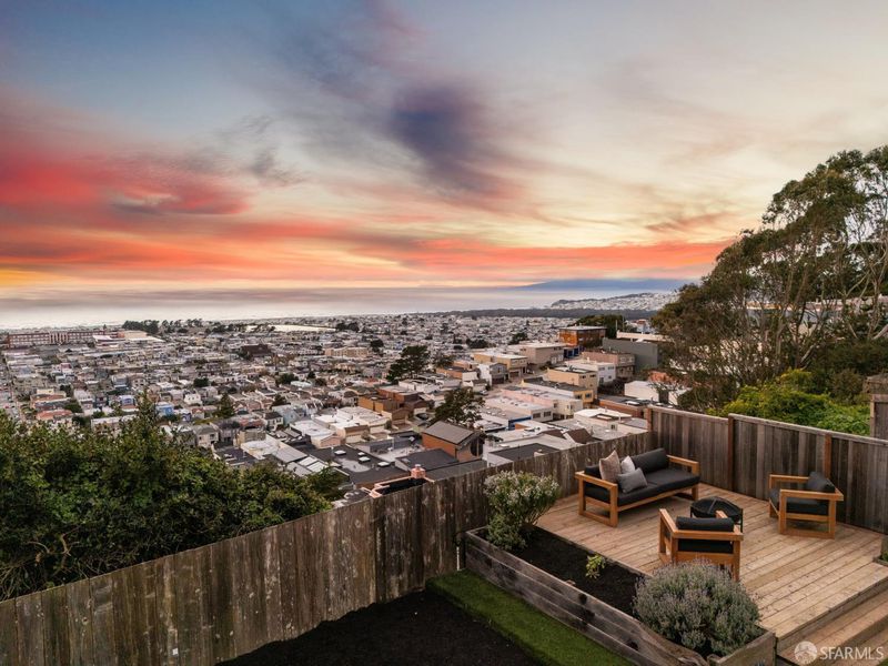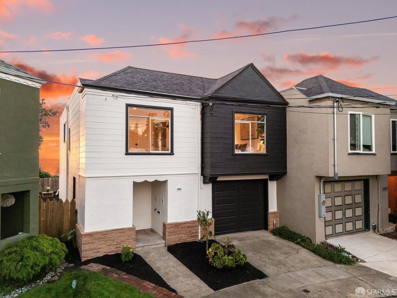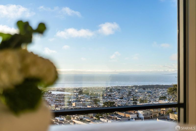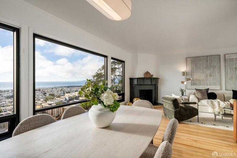 Breathtaking, Expansive, Forever VIEWS! Welcome to 2207 12th Avenue, where your love story gets a Pacific Ocean backdrop every night. With ocean views stretching from the Peninsula to the Marin Headlands, this 2-bedroom, 1-bath single-family semi-detached home will simply take your breath away. A wall of expansive windows creates a dramatic centerpiece, visible from the living room, dining room, and kitchen, framing epic sunsets with a direct view of the Farallon Islands. The beautifully remodeled kitchen features one more oversized window that keeps the views coming in, providing abundant natural light. Redone with quartz countertops and backsplash, ample storage, new Samsung appliances, and a skylight over the stove, this kitchen is a chef's dream. The L-shaped living and dining rooms feature original hardwood floors that have been gorgeously refinished, coupled with charming finishes and a stately wood-burning fireplace, which maintains the mid-century charm of this Doelger-style home. The bathroom includes a separate soaking tub, walk-in shower, and skylight that drenches the space in natural light. Two bedrooms face east, each with hardwood floors and spacious closets. Downstairs, the generous garage includes ample two-car parking, a built-in workbench, and significant overflow potential. The fully fenced outdoor space spills onto a level, oversized yard that is perfect for gardening or little ones, nestled under an expansive blue sky and the constant presence of the majestic Pacific Ocean beyond. Ready to entertain? The elevated deck is perfect for sunset dining and cocktails that will be the talk of the town. Easily accessible to public transportation and close to all the goodness of the Sunset and West Portal, 2207 12th Ave is truly a one-of-a-kind offering.