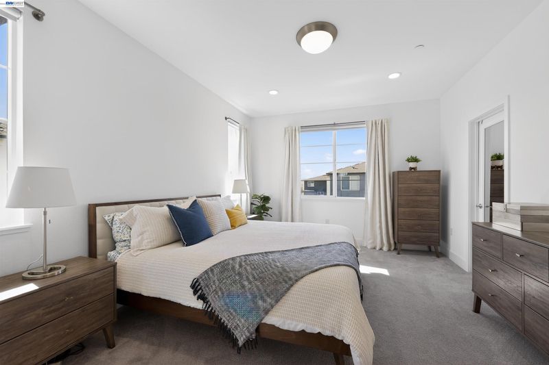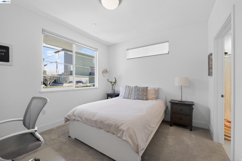 Searching for a 3-bed townhouse at SoHay that offers privacy, solar, EV charging, and easy access to BART? Discover 234 Bolt Ct, Hayward, CA 94544, a 2020-built end-unit home with 1,888 sq ft, three bedrooms with private ensuite bathrooms, and a guest half bath on the main living level. Bright, modern, and designed for comfort with commuter convenience. This end-unit townhouse lives like a retreat, featuring no bedroom walls shared with neighbors and a private entrance that welcomes you home. An oversized full-size two-car garage adds space and practicality. The entry level includes a bedroom and full bath, perfect for guests, multi-generational living, or a dedicated home office. Upstairs, the thoughtfully designed floor plan opens into a bright open-concept kitchen, dining, and living area with high ceilings that feel spacious and airy, ideal for both relaxed living and entertaining. The bright white kitchen shines with a large island, beautiful countertops, abundant cabinetry, a gas range, and impressive storage. The primary suite features a spacious ensuite bathroom and a generous walk-in closet. Step outside to your private balcony, or enjoy quick access to tree-lined paths for fresh-air breaks, morning walks, and dog strolls.