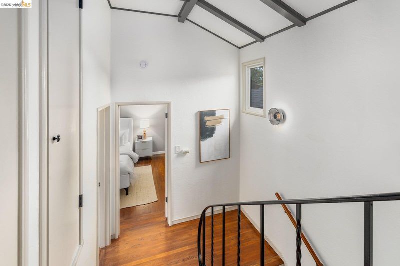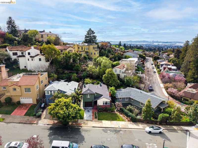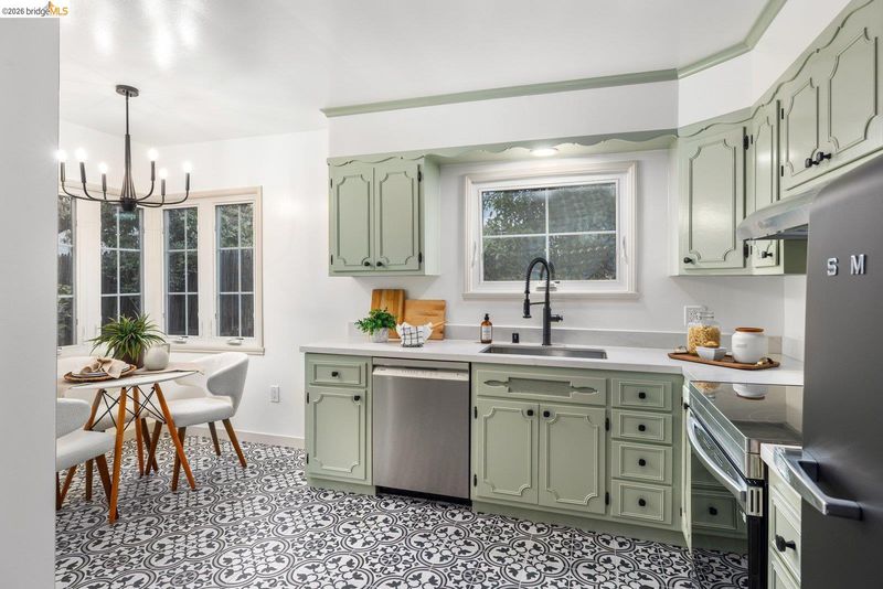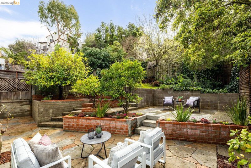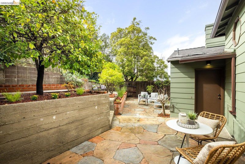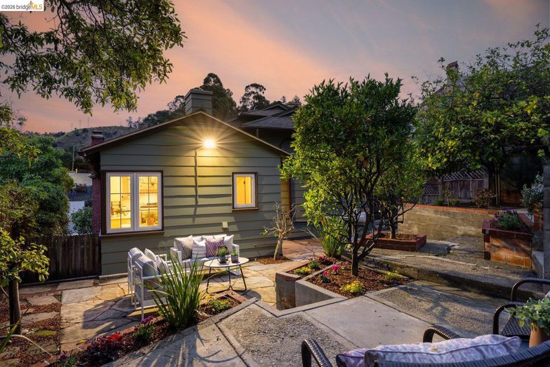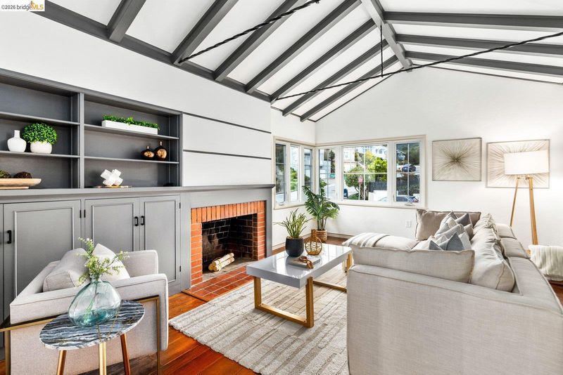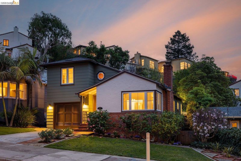 Welcome to the heart of Upper Rockridge! This 1940s Traditional blends timeless charm with modern updates. Front garden with lawn & camellias, private driveway & attached garage. Inside, the sunlit living room features refinished hardwood floors, a vaulted beam-and-truss ceiling & cozy brick fireplace flanked by built-ins. The formal dining room leads to the kitchen with vintage-meets-modern touches like patterned floor tile, updated countertops & premium appliances. A cheerful breakfast nook is attached. The private backyard offers a stone patio, tiered levels & flourishing lemon tree. Upstairs, two bedrooms await—a primary with a walk-in closet and bonus storage, and a second with dual closets. The remodeled bathroom and additional attic & subarea storage complete the home. Located just half a mile from a market & cafe, with easy access to Lake Temescal, Rockridge, Piedmont Avenue, and Montclair Village. This home offers classic elegance, thoughtful updates & an unbeatable location.