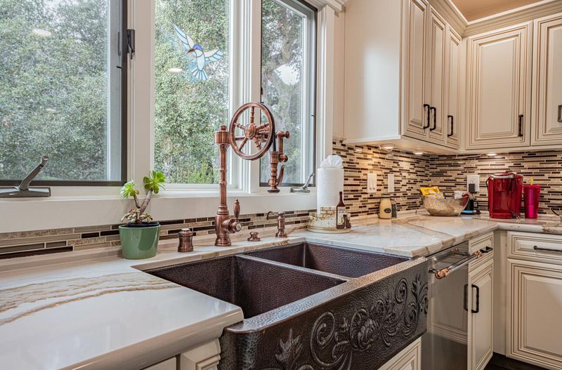 Remodeled designer retreat with mountain views! This stunning home has been fully upgraded inside and out from the new driveway and 4-car parking area with a majestic Cypress tree to the professionally designed, low-maintenance backyard paradise. Enjoy an Italian-inspired chefs kitchen with Silestone counters, a massive island, hand-hammered copper sink, Waterstone faucet, premium Bertazzoni oven/range and True Refrigerator, Freezer, and Wine Fridge. The open family room features new hardwood floors, a custom entertainment wall with 85" TV, and a cozy wood-burning fireplace. Retreat to the spacious primary suite with a sitting area or step outside to mountain views, built-in BBQ, stone dining area, turf lawn, raised garden beds, and a 240 sq ft barn shed/workshop with luxury (mountain lion proof) dog run. New lighting, hardwood and stone floors, Anderson sliders, central A/C, and a home backup battery system add comfort and peace of mind. Ideally located for access to Monterey and Carmel Valley, this home offers privacy, convenience, and timeless California style.