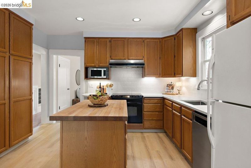- Dishwasher, Electric Range, Plumbed For Ice Maker, Microwave, Oven, Refrigerator, Self Cleaning Oven, Dryer, Washer, Gas Water Heater, 220 Volt Outlet, Breakfast Nook, Stone Counters, Eat-in Kitchen, Electric Range/Cooktop, Disposal, Ice Maker Hookup, Kitchen Island, Oven Built-in, Pantry, Self-Cleaning Oven, Updated Kitchen