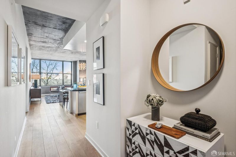 Welcome to the Bond! Experience modern urban living in this stylish 1-bedroom + dedicated office, 2-bathroom. Blending industrial-chic design with contemporary comfort, this 1,052 square foot condo offers an open layout with high ceilings, exposed concrete, views of Downtown Oakland, and abundant natural light. The spacious living area flows seamlessly into the kitchen and dining space - perfect for entertaining or relaxing after a long day. The private office provides a flexible space for remote work, creative projects, or a guest bedroom. 1 car independent garage parking allows for easy access to the unit when you just want to get home. This unit also has AC to keep you cool in summer. With two full bathrooms, this condo offers convenience and versatility rarely found in one-bedroom layouts. Step outside and enjoy the East Bay's most dynamic waterfront neighborhood! You're steps away from vibrant restaurants like Farmhouse Kitchen, Noka Ramen, and Souly Vegan. Bring out your inner child at Plank and the soon-to-open Dave & Busters. Want to enjoy more of Oakland? You're just minutes from Lake Merritt, Downtown Oakland, and Chinatown. Commuters will appreciate the unbeatable transit connectivity with quick access to 80, 580, and BART. The Jack London Square train terminal services the Capitol Corridor Amtrak Train. Want to skip the freeway and head to SF? The ferry leaves JLS and gets you to the Ferry building in 15-25 minutes (*per San Francisco Bay Ferry website). The Bond is a full-service building with a concierge during normal business hours, gym, BBQ area, business center, and dog run. All of this provides for a wonderful living experience. Become the next owner in the Bond today!