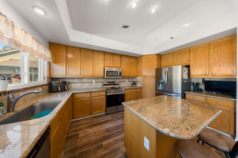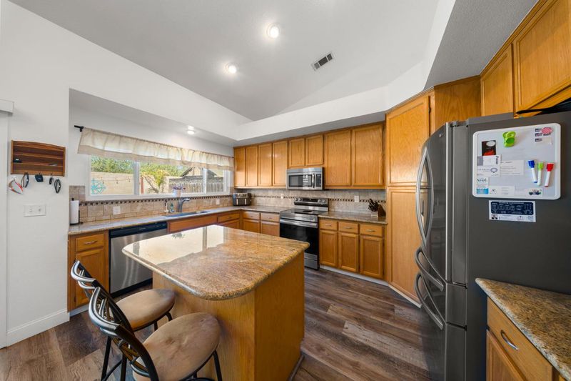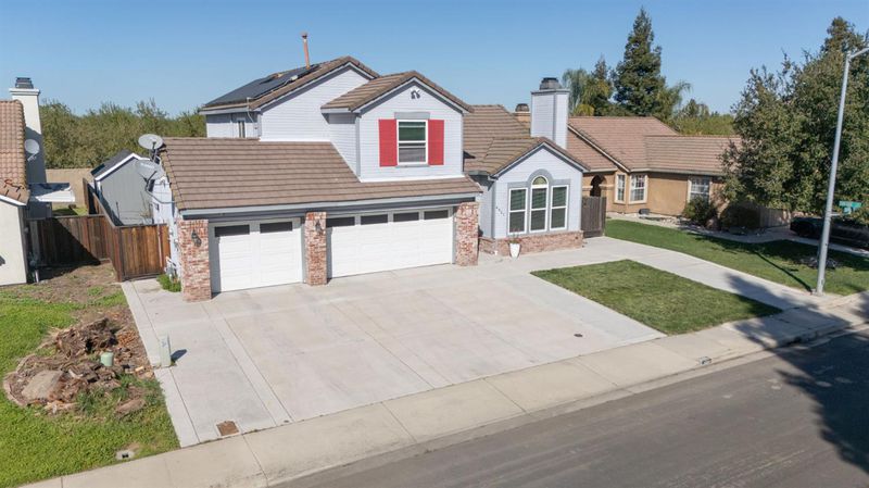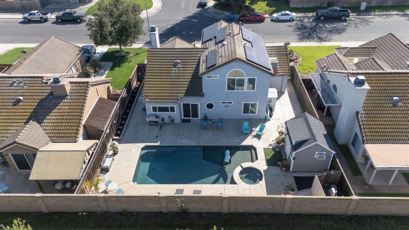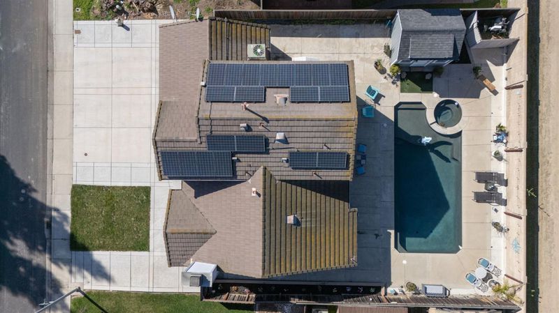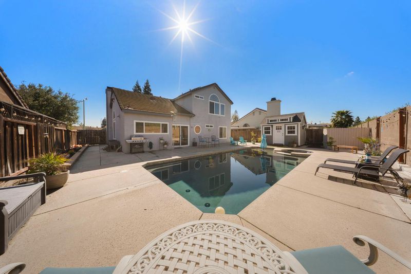 Situated at 4901 Sun Brook Dr in Salida, this residential property presents itself in great condition, offering an attractive presence and a paid solar system. The kitchen, a centerpiece of design, features a striking backsplash and a generously sized kitchen island, all harmoniously topped with elegant stone countertops and framed by stylish shaker cabinets, beneath a distinctive tray ceiling. This thoughtfully appointed space provides an ideal backdrop for everyday living and special occasions. Within the living room, an expansive atmosphere is created by the combination of a high ceiling and a vaulted ceiling, providing an airy sense of openness, while a welcoming fireplace offers a comforting focal point for relaxation and quiet contemplation. A dedicated upstairs bedroom suite offers the convenience of an ensuite bathroom, a private sanctuary complete with a functional double vanity and an invigorating walk-in shower, designed for personal comfort and ease. There is also a downstairs bedroom with a full bathroom next door. Outdoors, the property is distinguished by a durable cement tiled roof, and presents a generous patio, a practical 10'x12' shed with heating and cooling, and a secure fenced backyard, which thoughtfully encompasses an inviting in-ground hot tub and a refreshing private pool with remote control for lighting and heating and all pool functions. The total landscape of this property is low maintenance for ease of care. All of these elements collectively form an appealing outdoor oasis for leisure and recreation. This property offers a compelling combination of refined interior features and delightful exterior amenities, awaiting its discerning owner. Come and take a look!