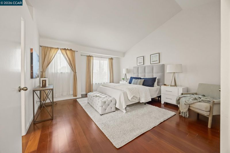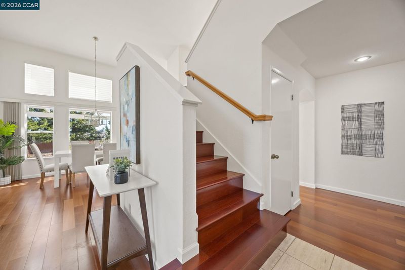 Elevated on a premium corner lot, this stunning 1,883 sq ft residence blends timeless elegance with thoughtful modern upgrades. Rich Brazilian Cherry hardwood floors flow throughout the main living areas, creating warmth and sophistication. The open-concept kitchen and family room offer seamless entertaining, while a formal dining room and separate living room provide refined gathering spaces. The private upstairs primary suite is a true retreat and complemented by a charming reading nook at the top of the stairs. Both bathrooms have been beautifully remodeled with contemporary finishes. Recent improvements include fresh exterior paint (November 2024), interior paint (November 2025), Anderson upper windows, a newer HVAC system (approximately 10 years old), and 12 owned solar panels (6 years old) for energy efficiency. Step outside to a low-maintenance backyard oasis featuring mature pear, orange, apple, and peach trees, an Alumawood pergola and patio cover, and partially obstructed river views. The side yard offers dedicated RV parking with three GFI electrical outlets—perfect for recreational vehicles or additional projects. This exceptional property offers privacy, elegance, and modern efficiency—all in a prime elevated setting.