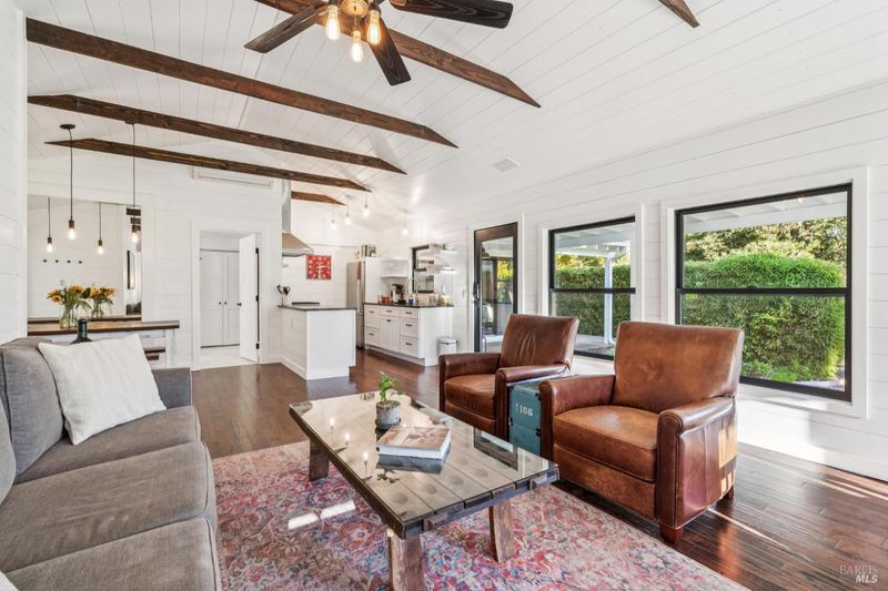 Embrace the Wine Country lifestyle in this fully updated modern farmhouse inspired by Joanna Gaines' Magnolia aesthetic. Wake in your serene primary suite, warmed by a propane fire stove, and open the curtains to a breathtaking view of your private vineyard. Enjoy your morning coffee in the gourmet kitchen or on the wrap-around porch beneath a radiant heater as the sun rises over Napa Valley. Spend your days walking the Vine Trail, visiting nearby wineries, harvesting your garden, or relaxing in a hammock. Entertain effortlessly with a Wolf dual-fuel range, Fisher & Paykel drawer dishwasher, outdoor dining for 20, bocce court, firepit, and a Samsung Frame TV with Polk Audio surround sound. End each night in the cedar barrel hot tub listening to the Napa River before retreating to your luxurious suite. Make your Wine Country dream a reality.