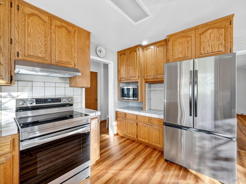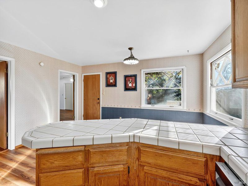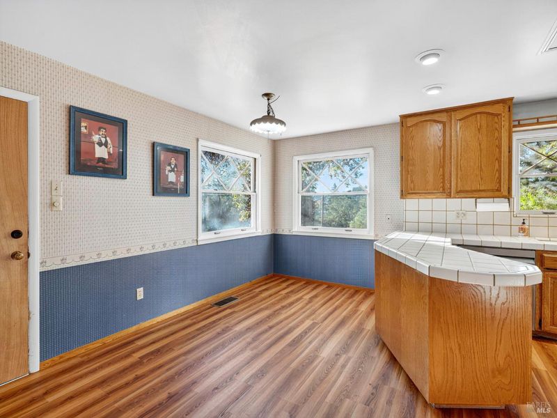 Set in one of Ukiah's most desirable neighborhoods, this custom built single story home offers expansive views of the valley, vineyards, and western mountains. With 4 bedrooms, 3 bathrooms, over 2,500 sqft of living space, this residence blends comfort, functionality, and privacy on 1.16 acres. This generous layout includes spacious living areas with hardwood flooring, a brick fireplace, and large picture windows showcasing sweeping views of the city lights, vineyards, and western hills. The kitchen includes a breakfast nook and plenty of storage, with an adjacent formal dining area. The primary suite offers two closets, a sitting area, and French doors leading outside. The ensuite bath includes double sinks, a tiled shower, and a separate jetted soaking tub. A separate wing provides additional bedrooms, office, and a full bath, ideal for guests or multi-generational living. Outside, enjoy a newly remodeled in-ground pool, sauna, and gazebo surrounded by mature landscaping. Two paved driveways offer ample parking, including space for an RV. An attached two-car garage and the privacy of a country setting complement the home's convenient proximity to downtown Ukiah.