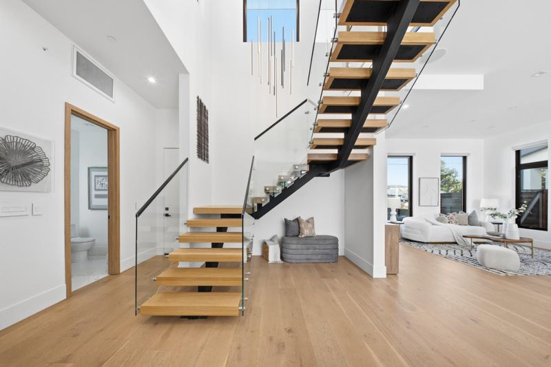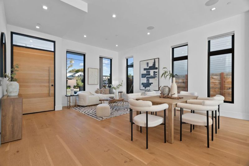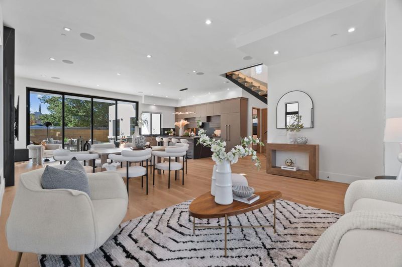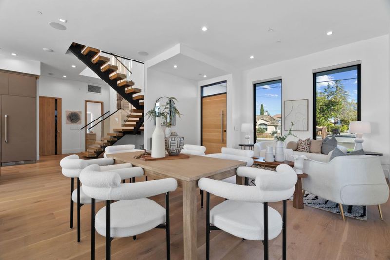 Newly built at the end of 2022, this contemporary masterpiece boasts a 2,293 SF main house plus a stylish 799 SF attached ADU for total of 3,092 SF. The first floor features 11-ft ceilings creating a bright and open atmosphere, a state-of-the-art chefs kitchen with European cabinets, an oversized 10' island, & high-end Thermador appliances. A striking set of floating stairs serves as both a functional centerpiece and a stunning architectural statement, enhancing the homes modern design The primary suite offers a large custom walk-in closet, a spa-like bathroom with oversized Spanish tiles, double sink vanities, freestanding tub, & an overhead rain shower. Expansive 16-ft multi-sliders open to a large covered patio with ceiling heaters, in-ceiling speakers, perfect for year-round entertaining. An additional sitting area & maintenance-free artificial grass provide a versatile space for play or relaxation. ADU with a separate access offers flexibility for guests, extended family, or rental income. This luxurious home combines modern design, high-end finishes, and thoughtful details, offering the perfect blend of comfort and style. Located near top-rated schools, Castro Street, Caltrain, and leading tech companies like Google, it's ideal for the discerning Mountain View lifestyle.