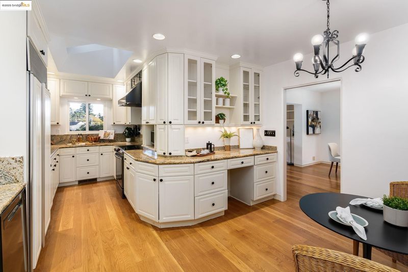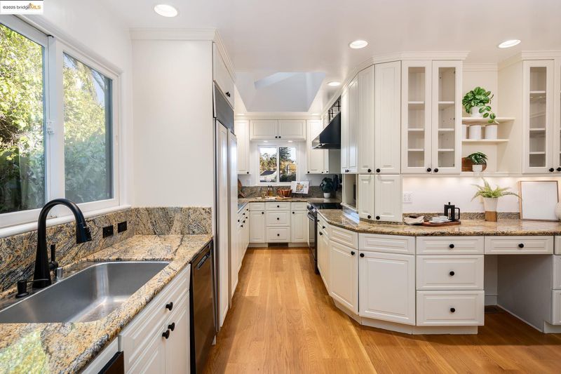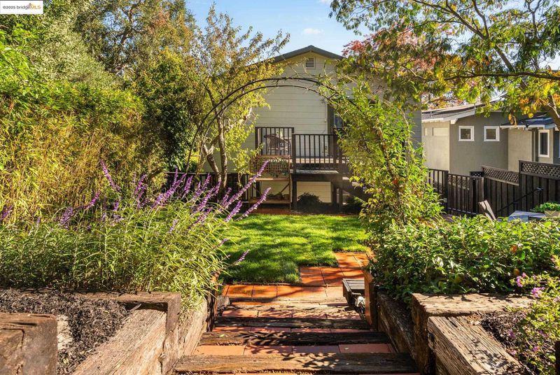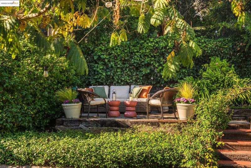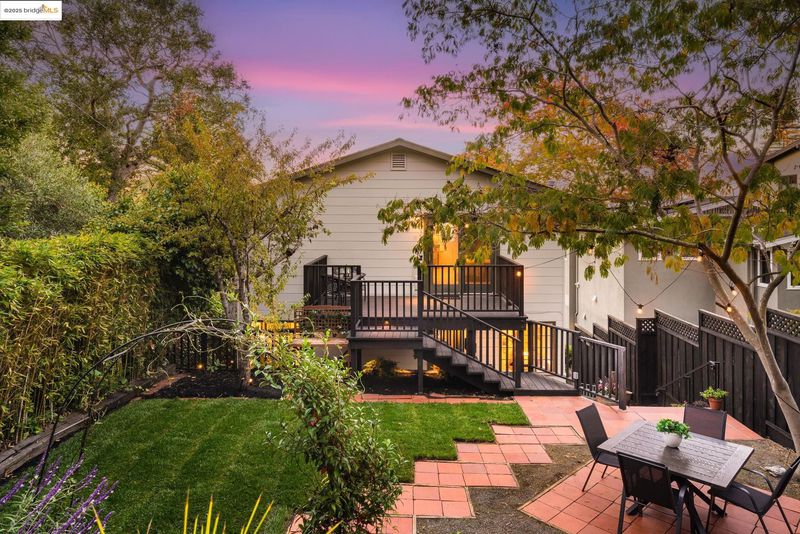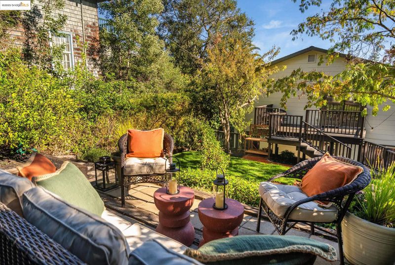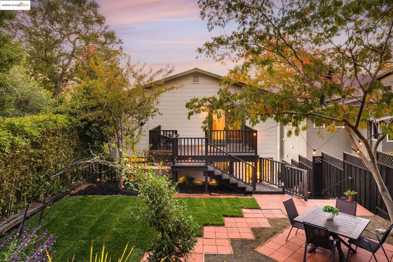 We welcome you to visit this gorgeous Piedmont home filled with warmth, character, and tasteful renovations throughout. The elevated front porch sets the tone as a welcoming extension of the home. Inside, the gracious living room greets you with refinished hardwood floors, a gas fireplace surrounded by built-in shelving, recessed lighting, and windows that frame the treetop view. The formal dining room leads into the chef-inspired eat-in kitchen with custom cabinets, two sinks, plenty of counter space, and a convenient pantry. Upstairs, the versatile split-level layout has four spacious bedrooms and three full bathrooms. The light-filled primary suite showcases a beautifully renovated bathroom and generous closet space. Step outside onto the deck overlooking the garden to the private backyard oasis featuring a beautifully landscaped yard with a lush lawn, large patio, and mature trees. The indoor-outdoor flow is perfect for relaxing or hosting friends and family. Pull right into the 2-car garage.