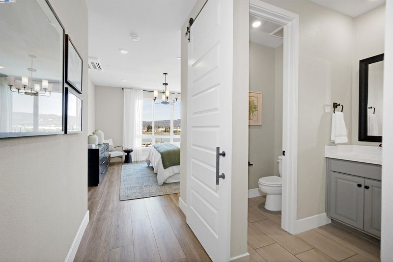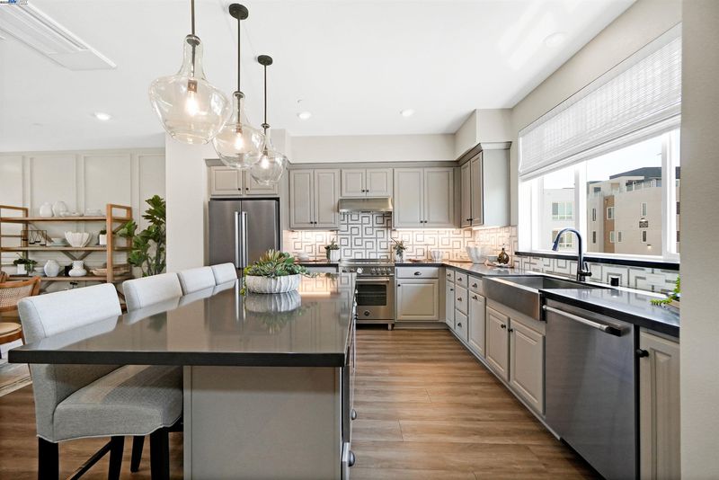 MOVE-IN READY! This charming 3 bed, 3.5 bath, new construction townhome at Waterside by Landsea Homes (now a part of New Home Co) offers over 2100 sq ft of contemporary living space with an expanded main living floor and a 10-year builder warranty. Enjoy a spacious open floor plan with a gourmet kitchen featuring Bertazzoni stainless steel appliances, quartz countertops, and ample cabinet space. The primary suite includes a walk-in closet and luxurious en-suite bathroom, plus upstairs laundry nearby. Each secondary bedroom is an en-suite and features its own private bathroom, one bedroom is conveniently located on the 1st floor. Additional highlights include a 2-car garage with an EV car charge outlet, solar installation (lease or purchase), energy-efficient AC/Heat & water heater, and balcony, plus your own private, stunning rooftop deck with waterside views of the marina. With local amenities like a boat house, parks, and public transit access, and easy access to 880 & 580, downtown Alameda, South Shore Beach, Oakland, and San Francisco, this home is perfect for commuters and those seeking a modern lifestyle. Don’t miss this opportunity to own a legacy property within Alameda Marina! This home is a part of the Alameda Marina $53M waterfront marina redevelopment and master plan.