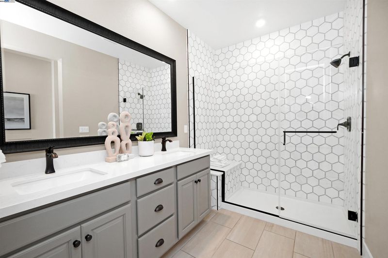 - Shower Over Tub, Solid Surface, Stall Shower, Tile, Updated Baths