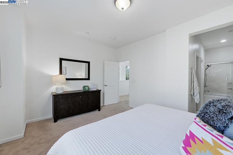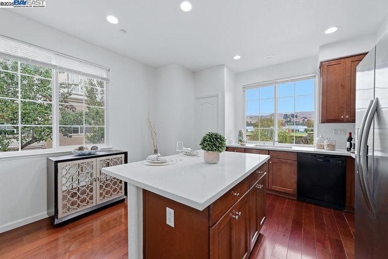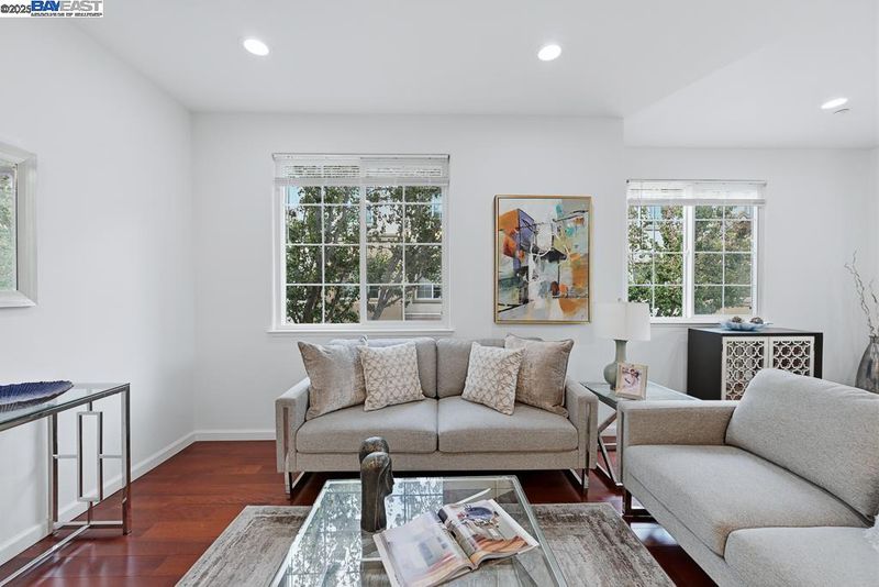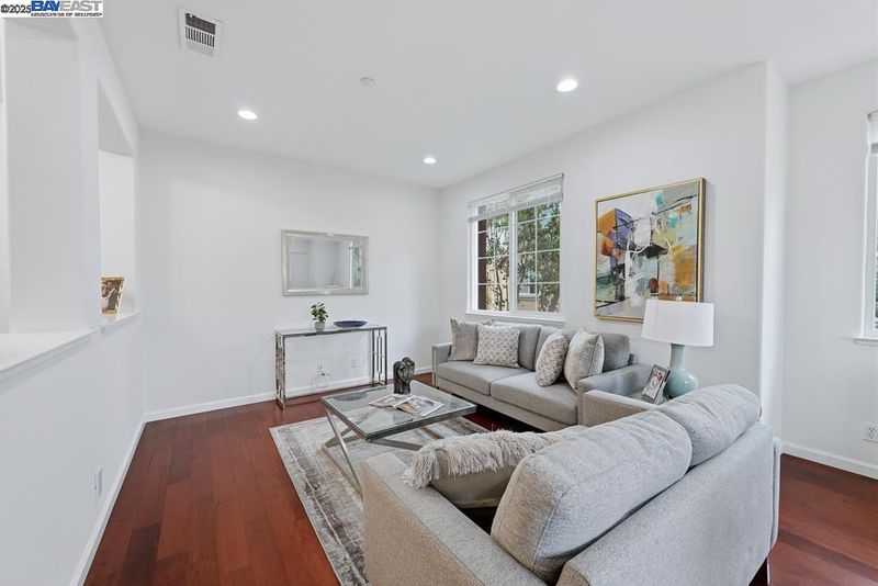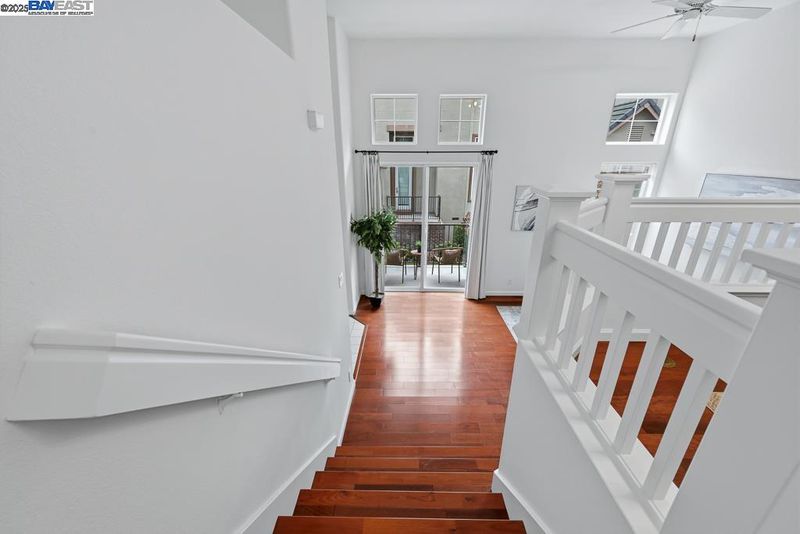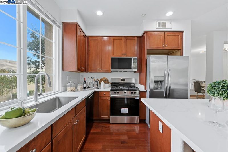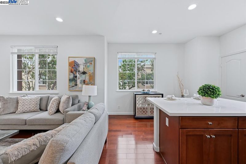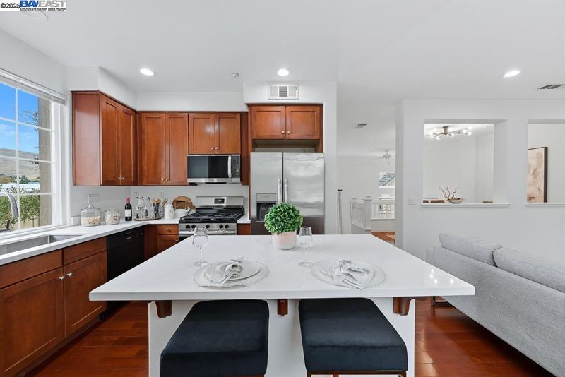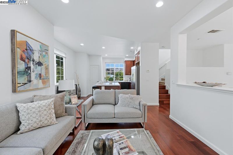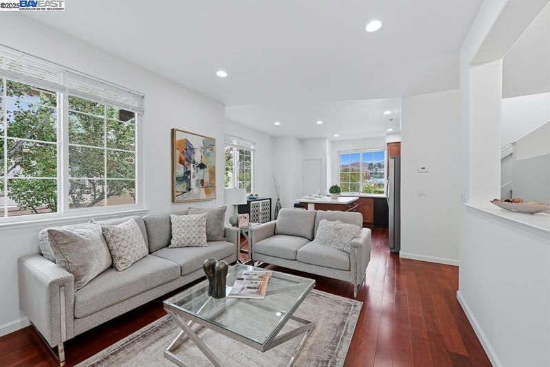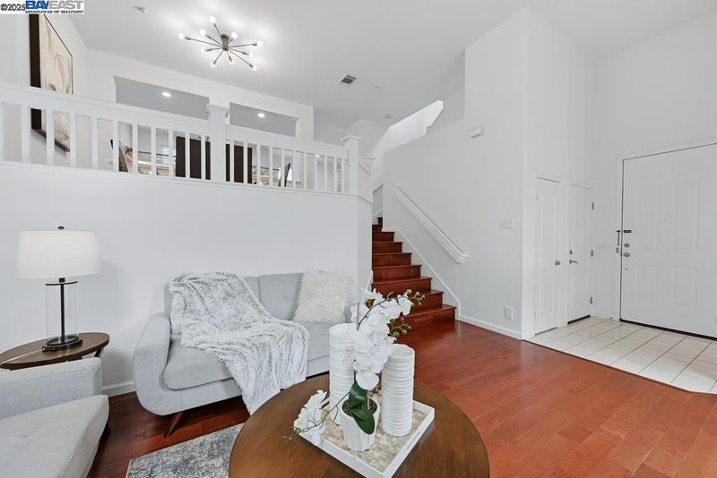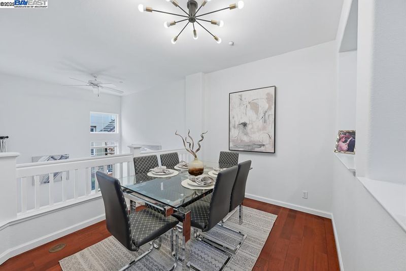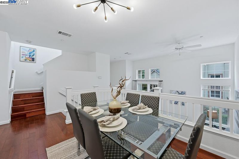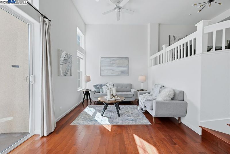 East Facing Contemporary Townhome-Style Condo (Corner Unit) located in the highly sought-after community in Pacific Terrace complex, offering a blend of comfort & convenience. Lots of natural lights, Fabulous high ceiling in living room. Freshly painted interior. Hardwood floors throughout separate living room, dining room and kitchen. New stone countertops in the kitchen with a large island, a spacious pantry, new faucet & sink, new stainless steel gas oven, new microwave /hood combo. Master Suite boasts a walk-in closet, dual vanities, new faucet at tub and shower. Upgraded new tiles flooring in master bathroom and hallway bathroom. A convenient Upstairs Laundry area, Washer/Dryer/Fridge/Water softener fixtures at garage to stay. Attached two-car (side by side) garage with ample storage. Prime location near top-rated schools, UC BART, shopping and dining, plus exceptional community amenities include a sparkling pool, club house & playgrounds.